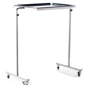 Carro de acero inoxidable para instrumental regulable en altura, con bandeja extraíble y ruedas giratorias.