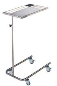 Carro para instrumental en acero inoxidable con 4 ruedas con freno y bandeja embutida, extraíble y regulable en altura manualmente.